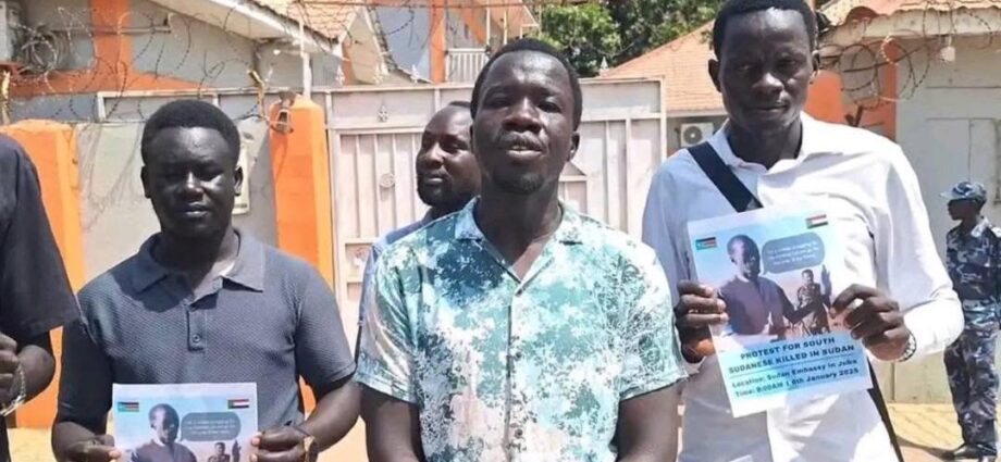 نظم عشرات السودانيين والجنوب سودانيين، اليوم الخميس، وقفة احتجاجية امام مقر السفارة السودانية بجوبا، احتجاجًا على الانتهاكات التي طالت مواطنين جنوبيين في ولاية الجزيرة على يد قوات الجيش السوداني.
